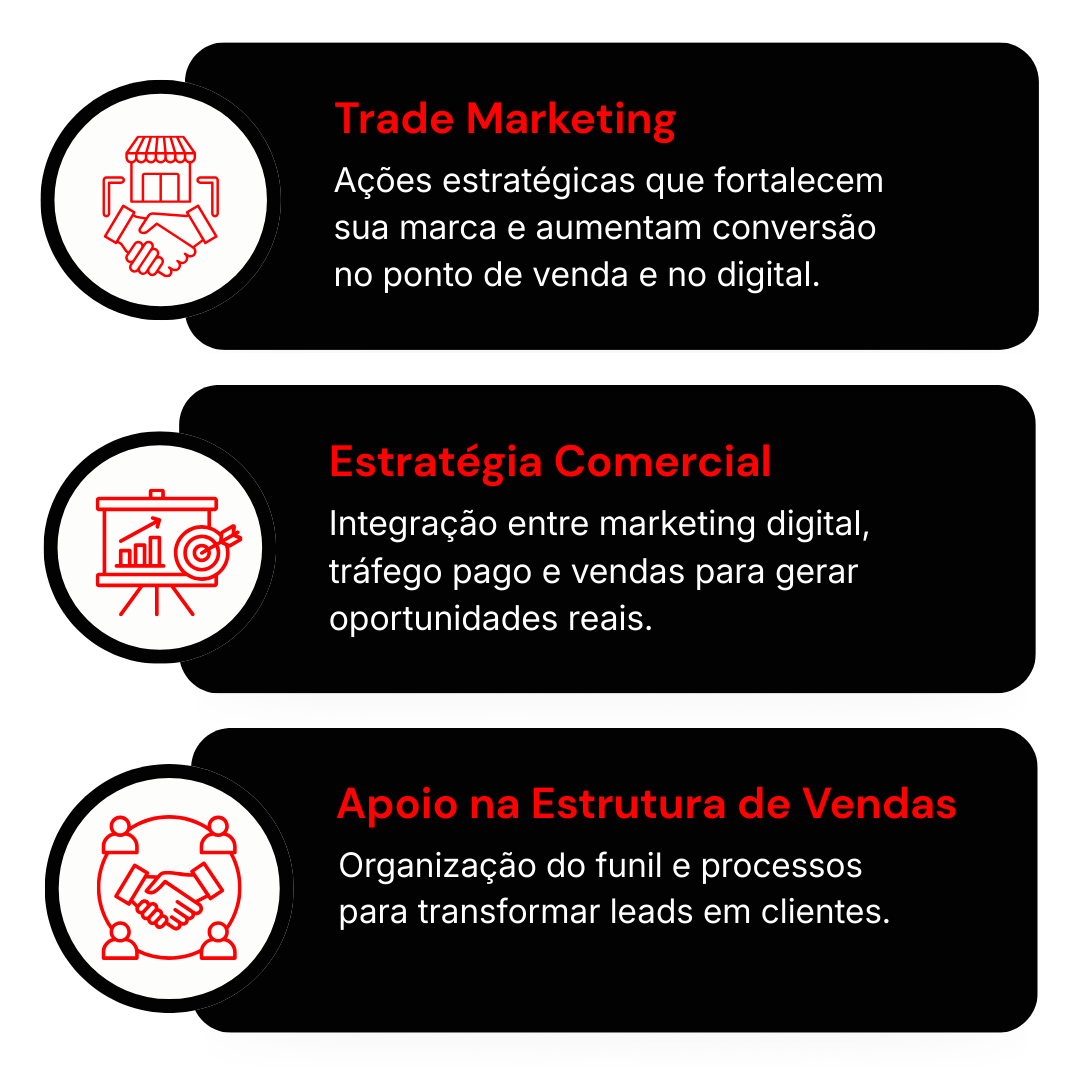 Mais do que executar ações pontuais, desenvolvemos sistemas de crescimento que permitem às empresas vender com mais consistência, controlar sua expansão e construir resultados duradouros.